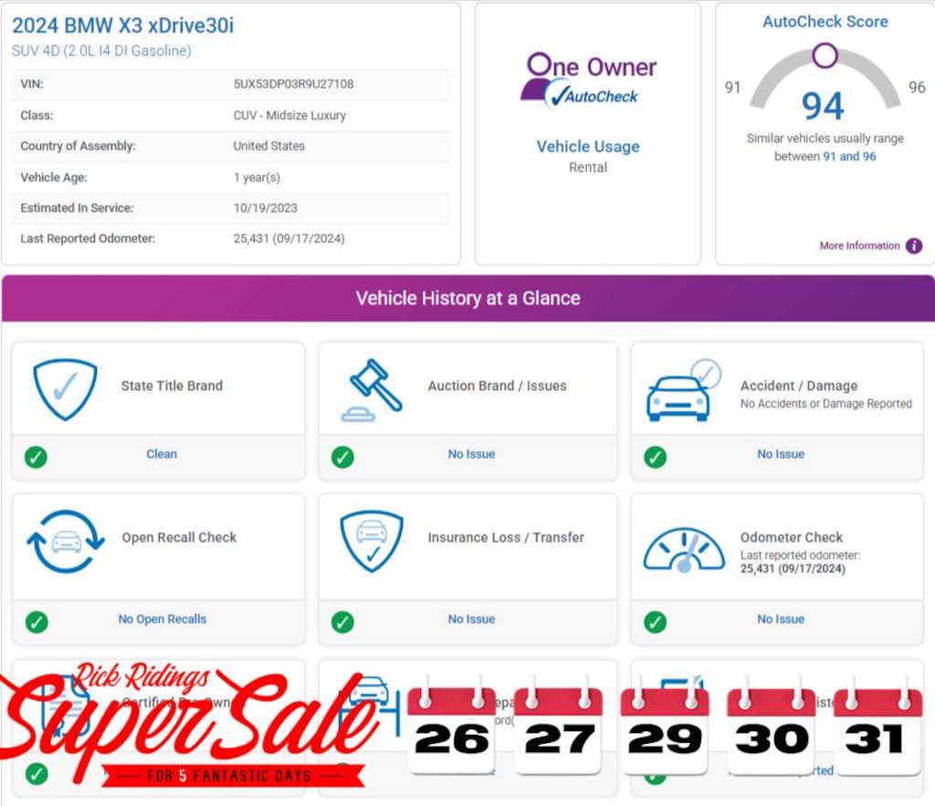 AutoCheck One Owner Reduced from $41,990. This X3 xDrive30i is priced $1,500 below Kelley Blue Book.