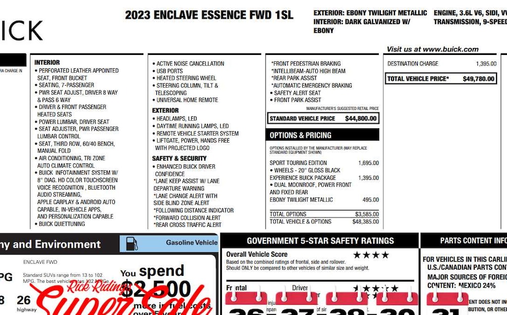 Great ride, comfort, styling and mileage for size of vehicle. CR rated Buick Enclave near top of luxury SUVs including BMW x5, Lexus RS350L, Porsche Cayenne and Lexus GX 460 for much less cost.… - 5.0