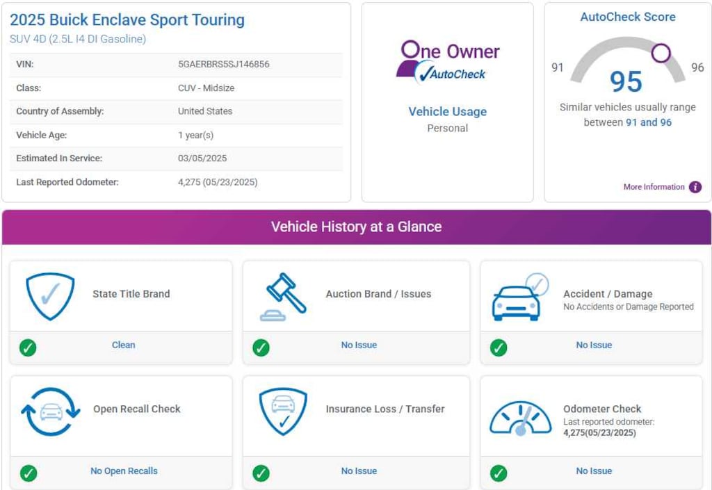 AutoCheck One Owner Was $48,990. This Enclave is priced $2,500 below Kelley Blue Book.