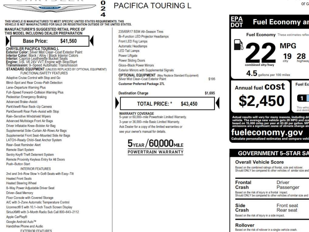 This is my eighth Chrysler minivan. All of them have gone well over 100,000 miles with no problems with engine or transmission. My 2002 went 275 miles with no problems and was retired when the rust took over. This Pacifica is very quiet and a pleasure to drive. The gas mileage is a bit less than the 2014 Town and Country it replaced. I have three complaints on this van. The driver's headrest pushes my head too far foreword. I use a cushion behind my back so that I can sit with my head up straight. The dash came loaded with shiny surfaces that had to be covered with glare free material and flat black paint. This has been a problem with these vans since 2006. The vision at corners to the passengers side is limited. A lot of care must be used at corners to make sure that there are no vehicles coming from the right. This touring L Pluss has many features that make driving safer.… - 5.0