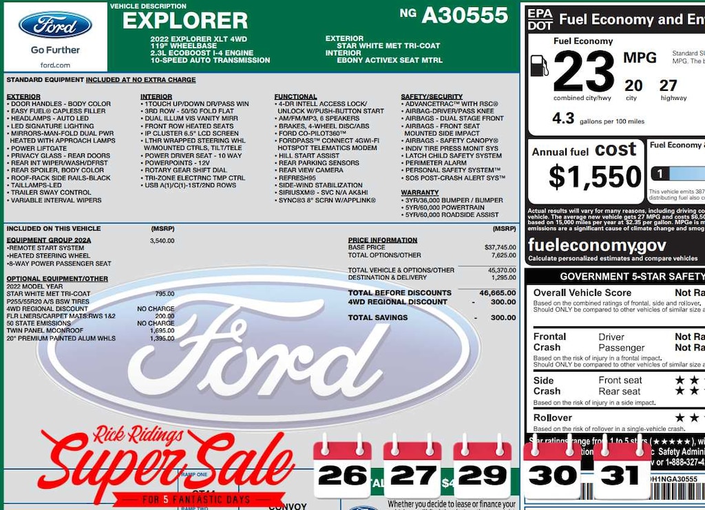 At Rick Ridings Ford we understand that your vehicle purchase is one of the biggest purchases you will make. Were here to make that process as easy and fun as possible. We cant wait to hear from you.