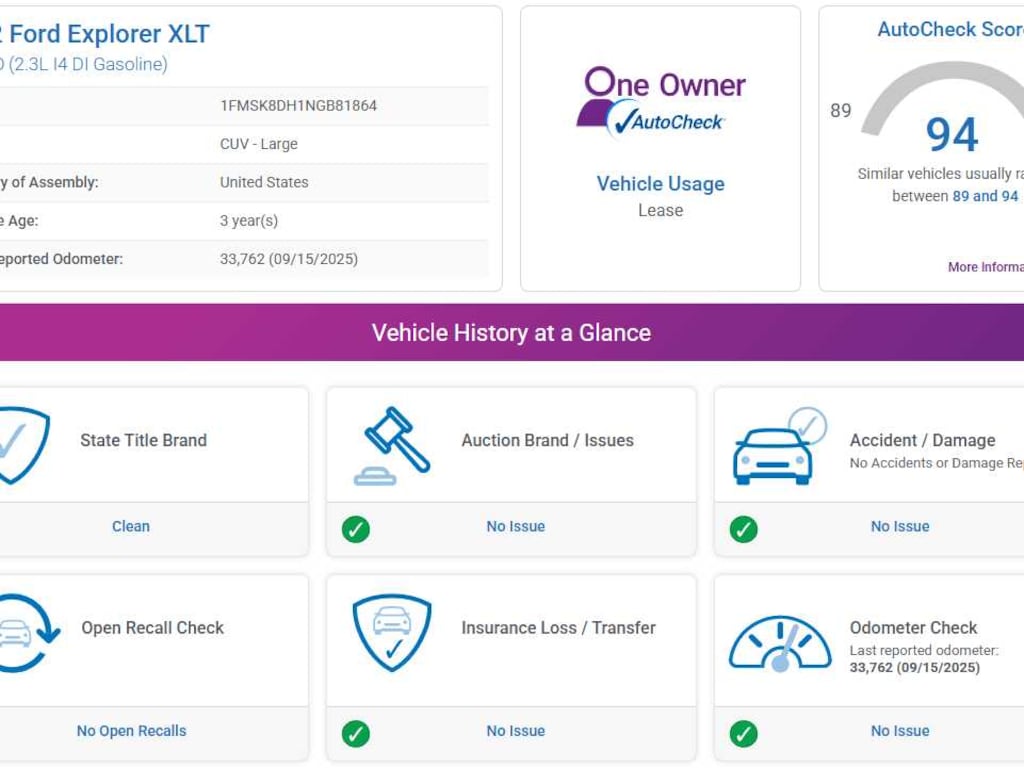 AutoCheck One Owner Was $35,990.