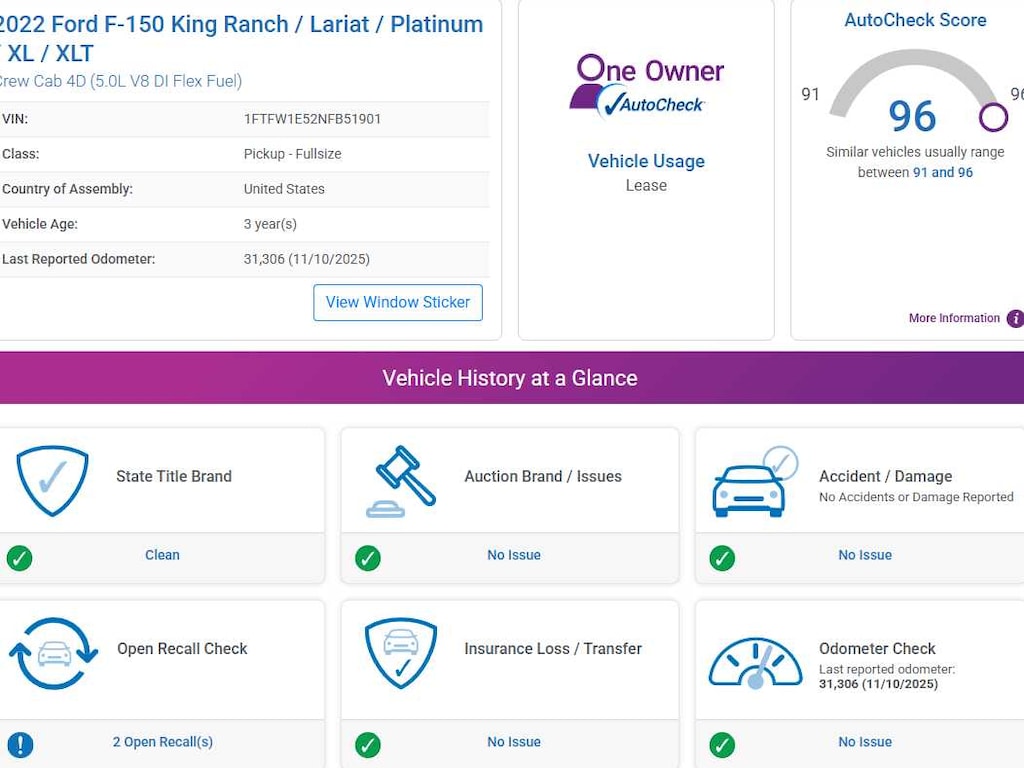 AutoCheck One Owner