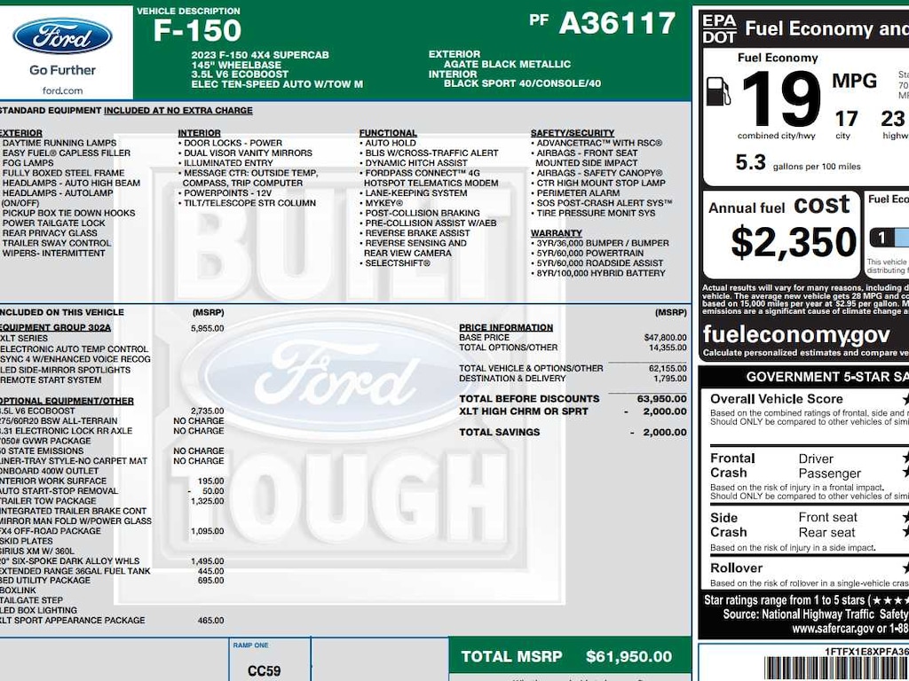 Class IV Trailer Hitch Receiver, towing capability up to TBD lbs, on 3.3L V6 PFDI engine (99B) and 2.7L EcoBoost engine (99P) or up to TBD lbs, on 3.5L EcoBoost engine (998) and 5.0L V8 engine (995), 7/4-pin connector, class IV trailer hitch receiver, smart trailer tow connector ( BLIS w/trailer tow coverage where BLIS is available), XLT Chrome Appearance Package, lower grille trim, Chrome Single-Tip Exhaust, Tires: 275/65R18 BSW Automatic Transmission, Chrome Door & Tailgate Handles w/Body-Color Bezel, bezel on side doors and black on tailgate, Wheels: 18 Chrome-Like PVD, 2-Bar Style Grille w/Chrome 2 Minor Bars, silver painted surround and black background mesh, Bright Polished Step Bars, Zone Lighting, Intelligent Access w/Push Button Start, approach detection, SecuriCode Drivers Side Keyless-Entry, 3.31 Axle Ratio, GVWR: 7,050 lbs Payload Package, Tires: 275/60R20 BSW AT, BoxLink, 4 premium locking cleats, Zone Lighting, LED Box Lighting, Tailgate Step w/Tailgate Work Surface, body-color wheellip moldings and unique interior finish, Box Side Decals, Chrome Single-Tip Exhaust, Body-Color Door & Tailgate Handles, body-color bezel on side doors and black on tailgate, Tires: 275/65R18 BSW Automatic Transmission, Wheels: 18 6-Spoke Machined Aluminum, gloss black painted pockets, Accent-Color Step Bars, Body-Color Front & Rear Bumpers, body-color front fascia, Black 2-Bar Style Grille w/Black Surround/Accents, ELECTRONIC LOCKING W/3.31 AXLE RATIO, selectable drive modes: normal, ECO, sport, tow/haul, slippery, deep snow/sand and mud/rut (STD).