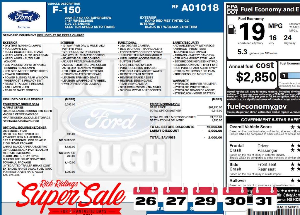 At Rick Ridings Ford we understand that your vehicle purchase is one of the biggest purchases you will make. Were here to make that process as easy and fun as possible. We cant wait to hear from you.