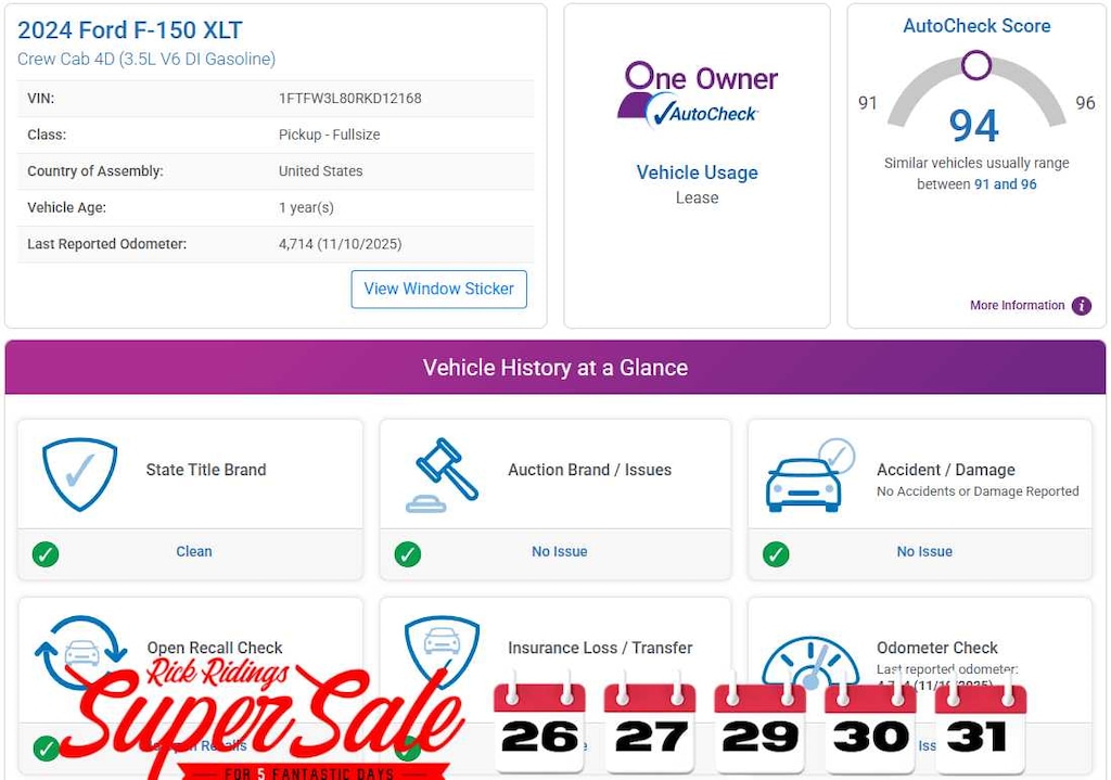 AutoCheck One Owner Was $46,990.