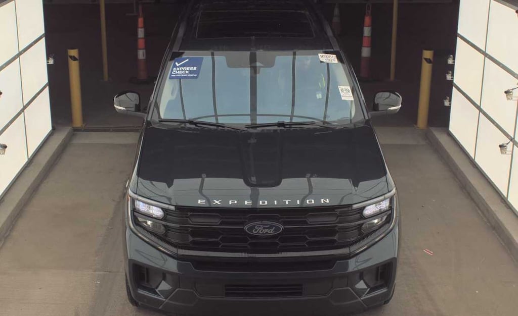 EQUIPMENT GROUP 202A HIGH PACKAGE Ford Split Gate, power upper liftgate and power lower tailgate, Wheels: 20 Carbonized Gray Bright Machined Aluminum, 360-Degree Zone Lighting, 110V/400W AC Power Outlet, 1 console outlet and one cargo area outlet, BlueCruise Equipped, 90-day trial, Not available to military sales, Universal Garage Door Opener, Power Panoramic Vista Roof w/Power Sunshade, Rain Sensing Wipers, Power Tilt/Telescopic Steering Wheel w/Memory, Memory Driver Seat, Tires: P275/60R20 AT, Ford Co-Pilot360 Active 2.0, Driver State Detection, Intersection Assist, pre-collision assist w/autonomous emergency braking, pedestrian detection, forward collision warning and dynamic brake support, Front Side Laminated Glass, Wireless Charging Pad, Located in media hub, 2nd Row Power-Folding.