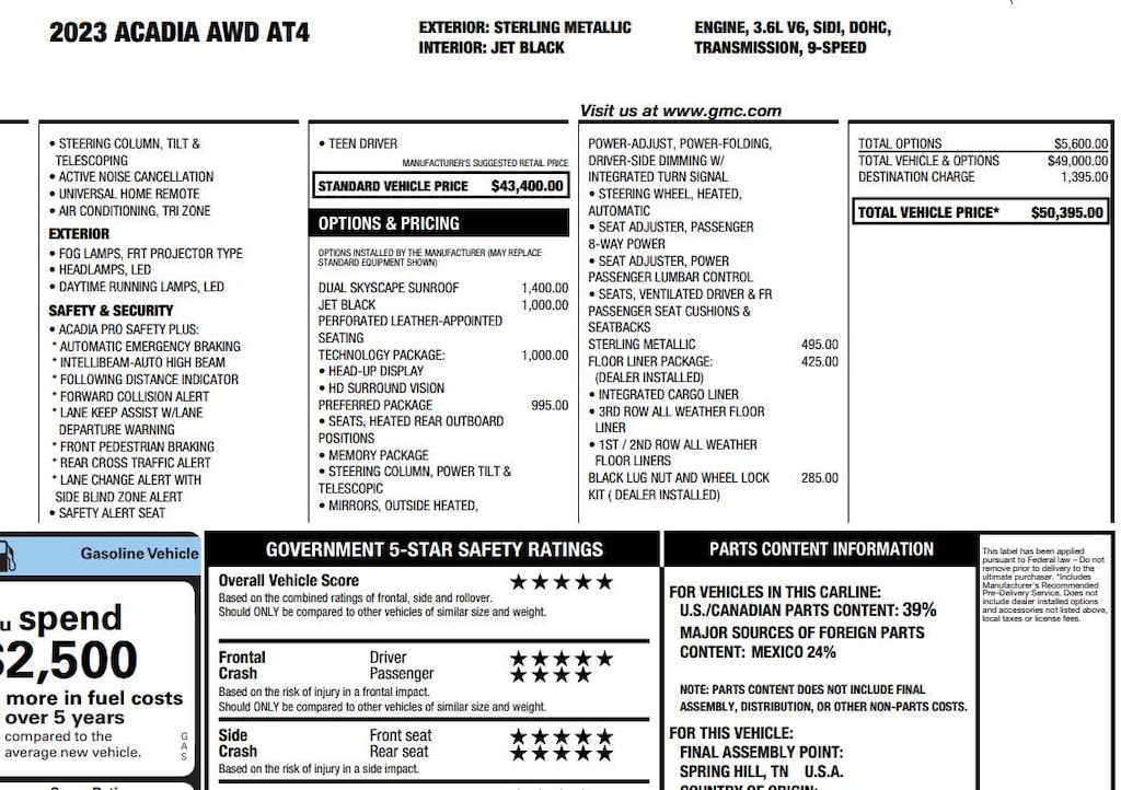 Third Row Seat, Quad Bucket Seats, Power Liftgate, Rear Air, Premium Sound System. GMC AT4 with Sterling Metallic exterior and Jet Black interior features a V6 Cylinder Engine with 310 HP at 6600 RPM*.