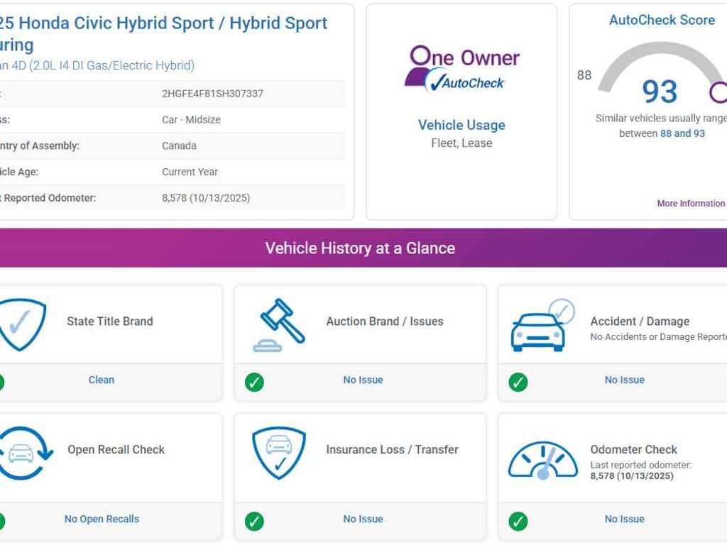 Used 2025 HondaCivic Hybrid Sport