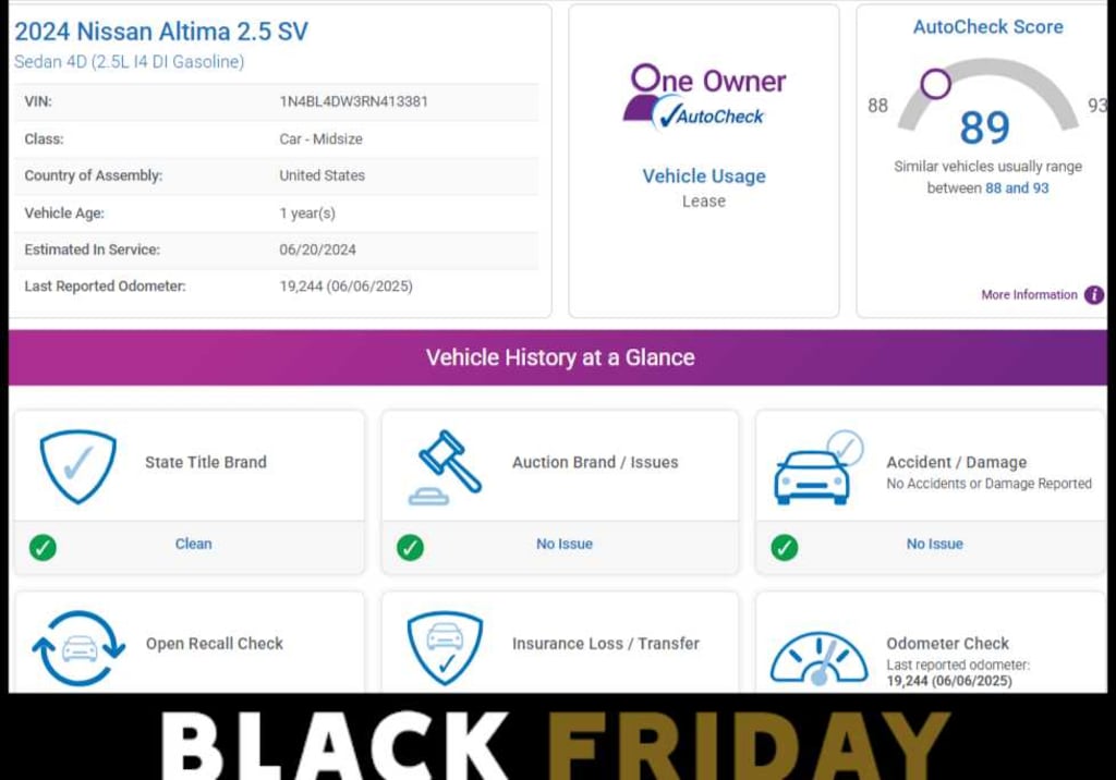 AutoCheck One Owner Was $24,990. This Altima is priced $1,100 below Kelley Blue Book.